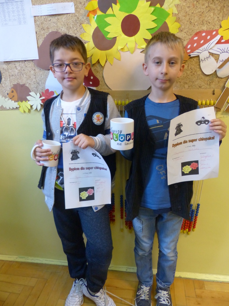 W poniedziałek 30 września chłopcy z klasy III obchodzili święto chłopaka. Z tej okazji został zorganizowany konkurs na ,,Super Chłopaka”. Chłopcy brali udział w różnych konkurencjach. Dyplom i tytuł ,,Super Chłopaka” otrzymali Szymon Bartosik oraz Igor Trębacz. Gratulujemy! Dziewczynki złożyły życzenia i wręczyły swoim kolegom piękne kubeczki do picia.