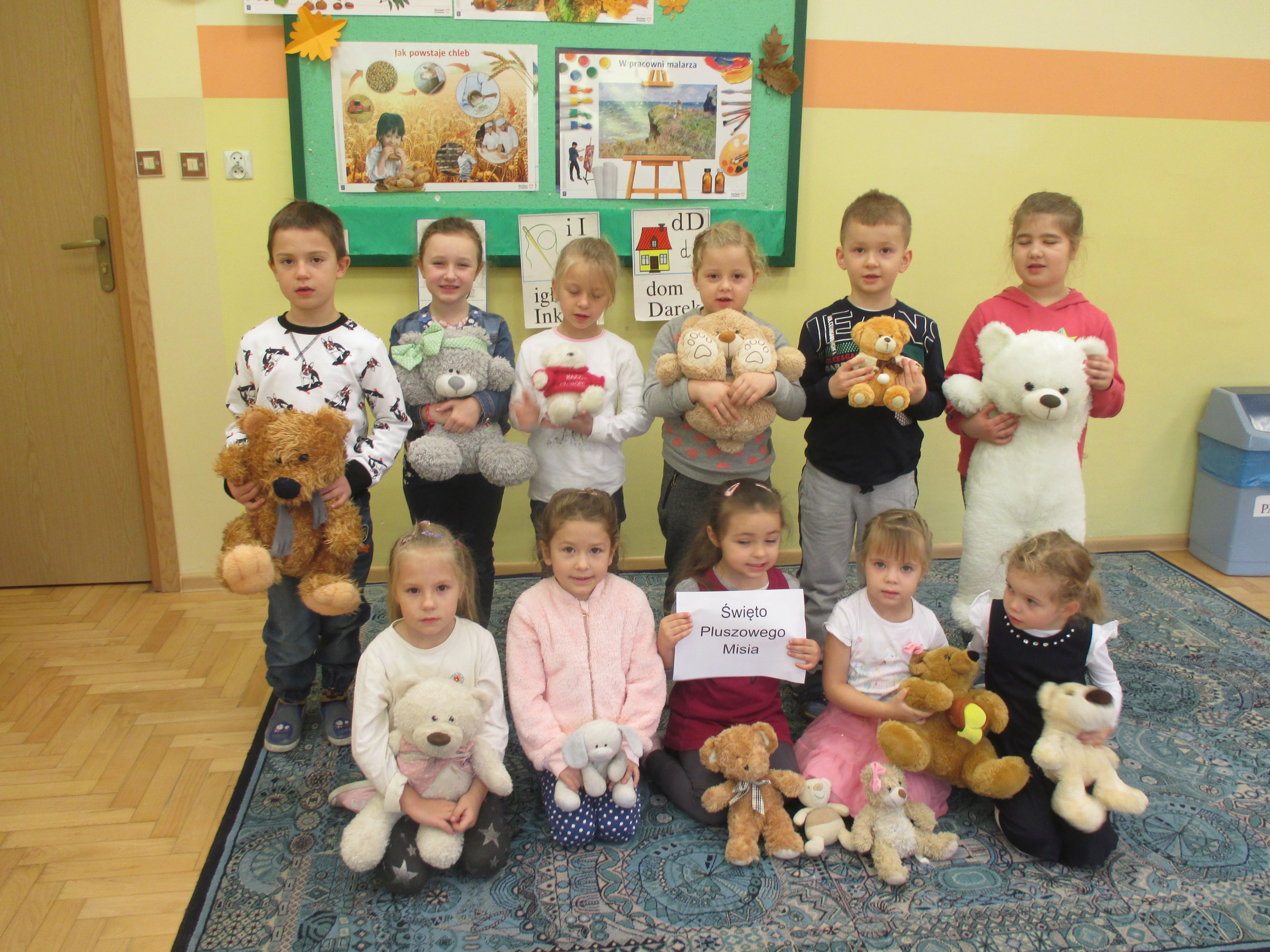 24 listopada 2017r. w naszym przedszkolu obchodziliśmy Światowy Dzień Pluszowego Misia. W tym dniu najważniejszymi gośćmi były przyniesione z domu misie. Były tańce z misiami oraz poranna gimnastyka ze swoim ulubieńcem. Na koniec dzieci poznały historię powstania pluszowego misia oraz wysłuchały jednej z historii ,,Kubusia Puchatka i jego przyjaciół”.