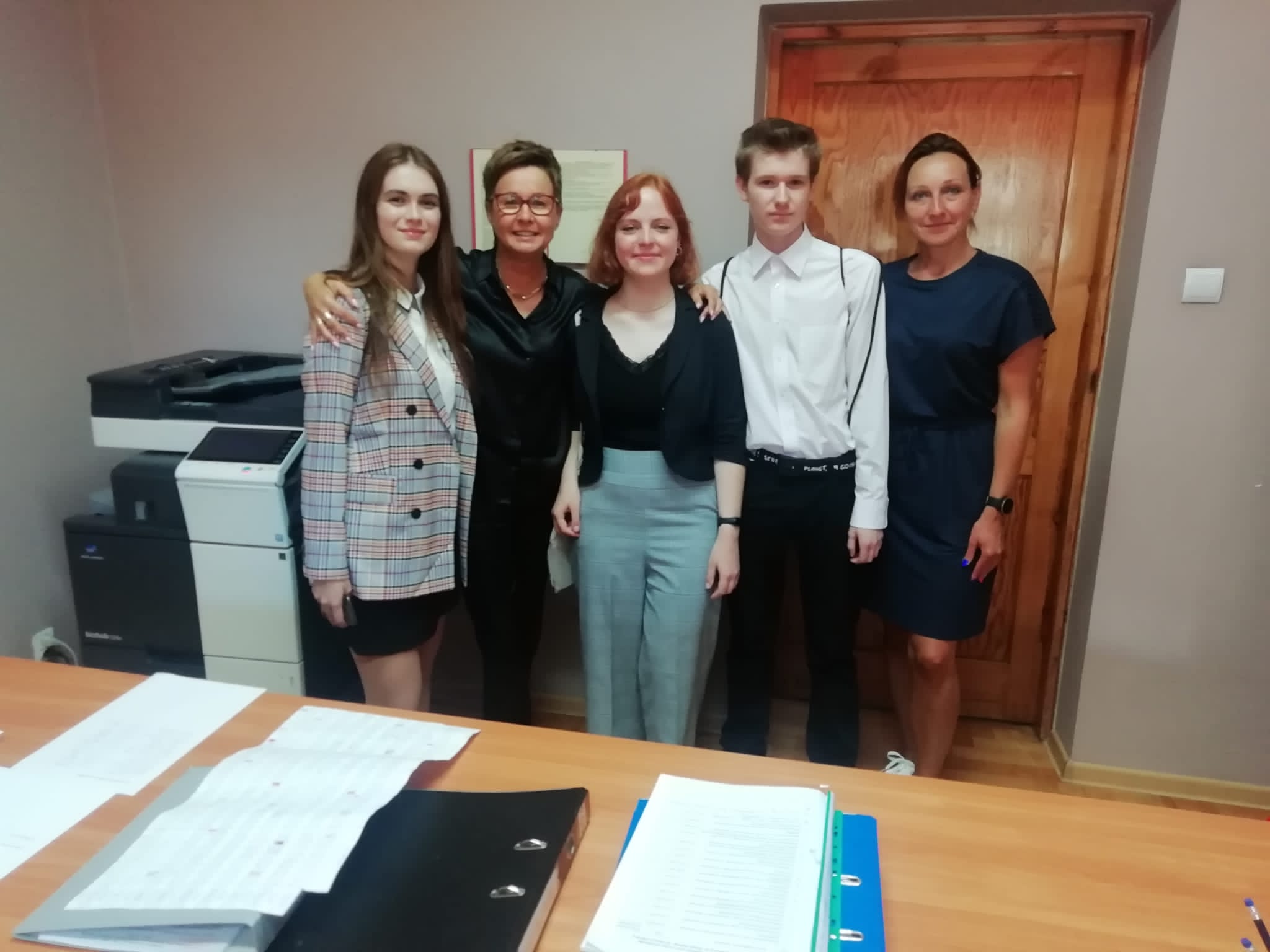 Absolwenci szkoły podczas wizyty w sekretariacie.